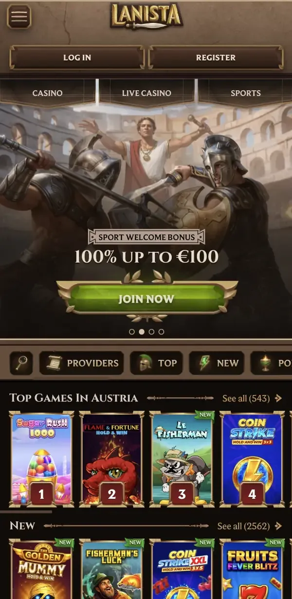 Το μεγαλύτερο όφελος είναι η ευκολία. Μπορείτε να παίζετε στο σπίτι, στο ταξίδι ή στη διάρκεια ενός σύντομου διαλείμματος. Εστιάζουμε επίσης στην απόδοση, ώστε οι σελίδες να είναι ελαφριές και τα μενού εύκολα προσβάσιμα σε μικρότερες οθόνες. Όταν παίζετε στο Lanista Casino, η έκδοση για κινητά δεν είναι «μειωμένο» προϊόν· έχετε τα ίδια εργαλεία λογαριασμού, τις ίδιες προωθητικές ενέργειες και τους ίδιους παρόχους παιχνιδιών όπως στο desktop.